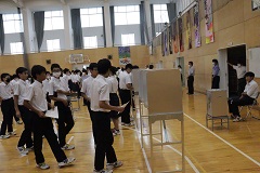 | 10月3日(金)の4限目に、令和7年度「後期生徒会役員選挙」立会演説会と選挙がありました。 どの立候補者も堂々として素晴らしい演説でした。 |
