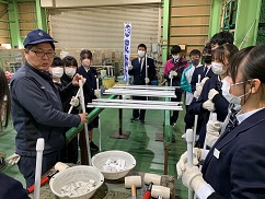 | 5・6限目に、2年生は「第一ビニール」「カイノス株式会社」「福井キャノンマテリアル株式会社」「福井石油備蓄株式会社」「株式会社長田工業所」「光生アルミニューム工業株式会社 福井製作所」「 トヨシマせんい株式会社」にて「企業訪問」を実施しました。 どの企業の方も、丁寧に中学生に説明をしてくれました。生徒たちも疑問に思ったことを質問し、仕事への関心を高めるきっかけになりました。 |