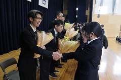 | 午後より、春江中学校を離任される14名の教職員へのお別れの会が開かれました。勤務の期間に長短はありますが、春江中学校に大きな実績を残していただいた先生方です。 お別れになる先生方からは、生徒たちのとってためになるお話をいただきました。 |
