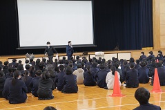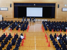 | 6限目に、後期の生徒総会が体育館にて開催されました。 生徒会執行部及び各委員会より、令和7年度の後期の活動計画案が提案され承認されました。 |