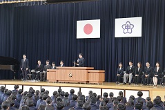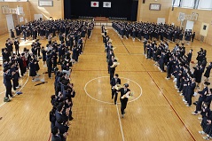 | 午後より、春江中学校を離任される14名の教職員へのお別れの会が開かれました。勤務の期間に長短はありますが、春江中学校に大きな実績を残していただいた先生方です。 お別れになる先生方からは、生徒たちのとってためになるお話をいただきました。 |
