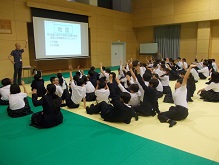 | 2限目に授業参観を実施し、3・4限にPTA教養委員会主催で、講演会を開催しました。福井ブローウィンズの満田丈太郎選手と湯本代表取締役をお招きし、「ともに巻き起こそう とてつもない旋風を」を演題として、これまでの歩みの中で挑戦を続けてきた経験を話していただきました。生徒たちが自分の未来に希望をもち、一歩を踏み出す勇気を育むきっかけとなりました。 | |