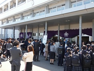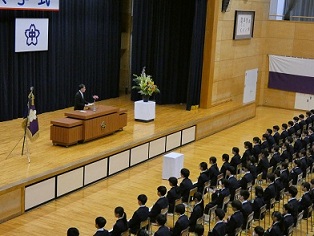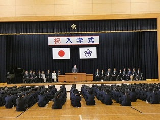 | 4月8日(水)午後より、入学式が挙行されました。新入生230名は期待と緊張を胸に中学校生活がスタートしました。入学式後、各教室で担任からのメッセージや抱負を聞き、教科書などが配布されました。 | |
